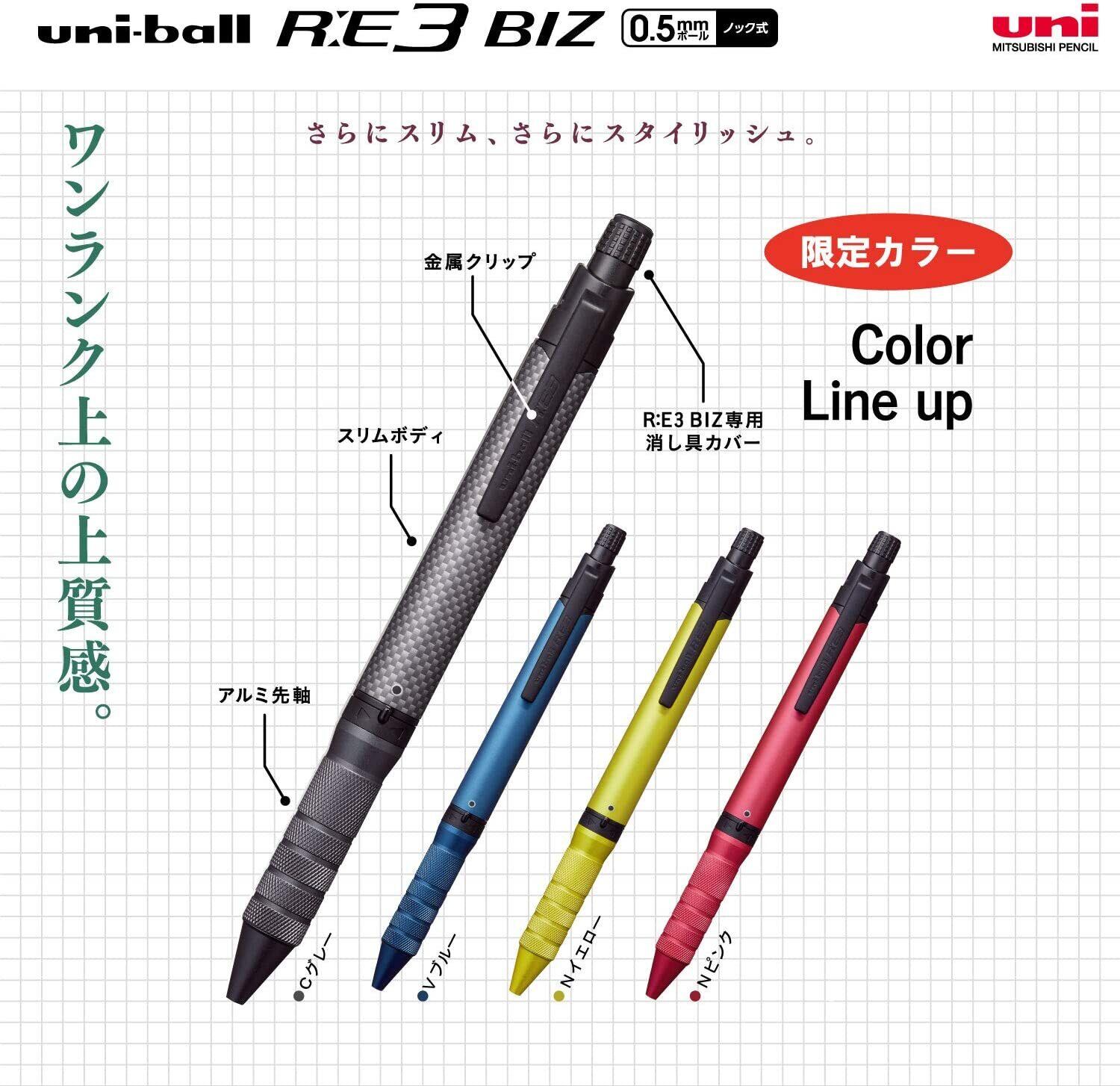 『ユニボール R:E 3』の12.7mm径のスリムな軸よりも、グリップ部分を絞り、よりスリムに見えるスタイリッシュなデザイン。